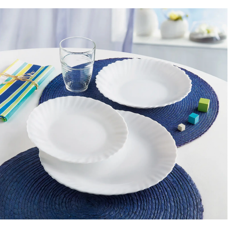 Talerz deserowy Feston znana, popularna i w dobrej cenie zastawa stołowa wykonana z białego szkła hartowanego. Szkło hartowane poddawane jest specyficznej obróbce termicznej w celu zagwarantowania lepszej jakości i wytrzymałości na wstrząsy i uderzenia. Szkło jest materiałem nieporowatym, dlatego nie zatrzymuje żadnych mikroorganizmów, jest 100% higieniczne.